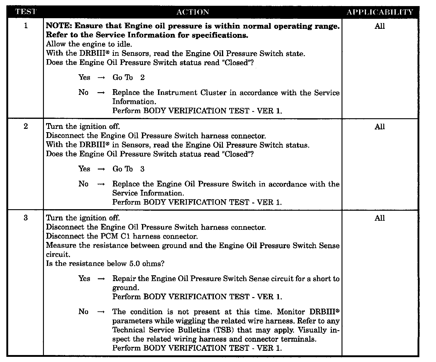 Engine oil pressure switch sense circuit short to ground