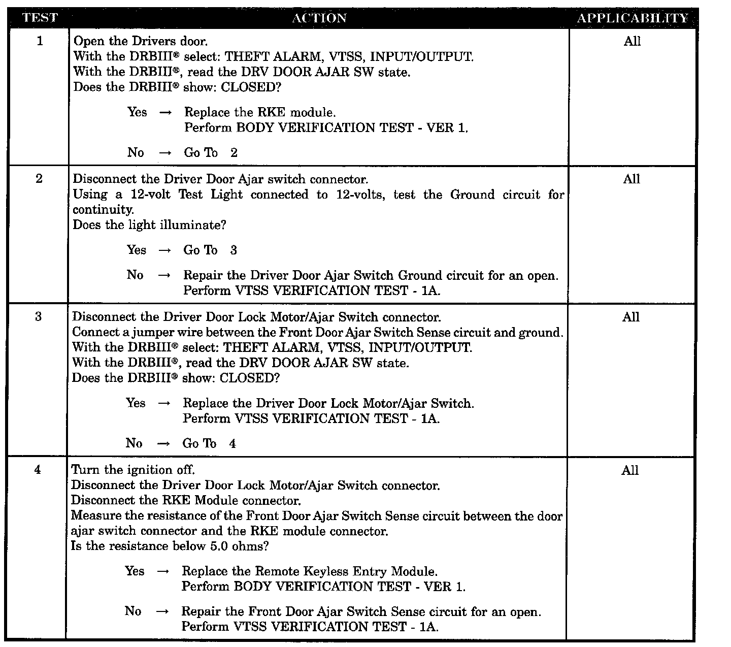 - Driver door ajar switch ground circuit open