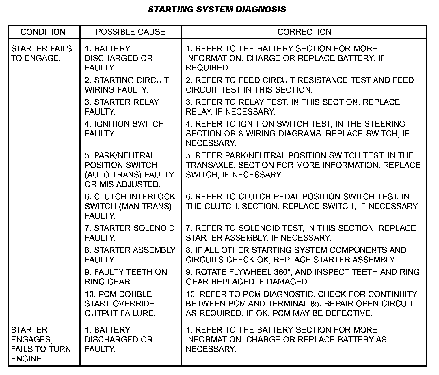 STARTING SYSTEM TESTFor circuit descriptions and diagrams, refer to the Wiring Diagrams.