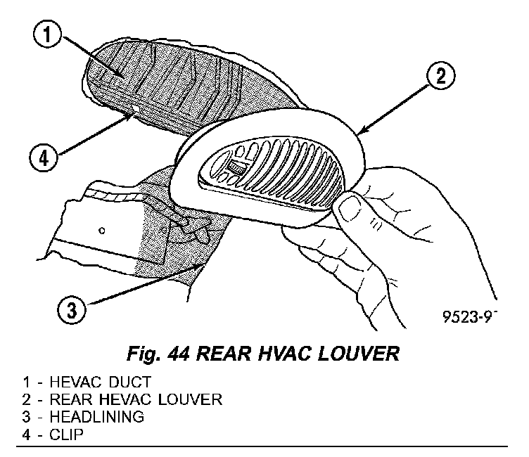 3. Using a trim stick, pry lower edge of HVAC bezel away from headlining (Fig. 44).