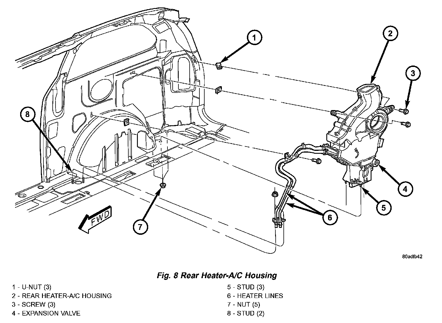 Fig.7 Rear Heater - A/C Unit Mounting Studs:
