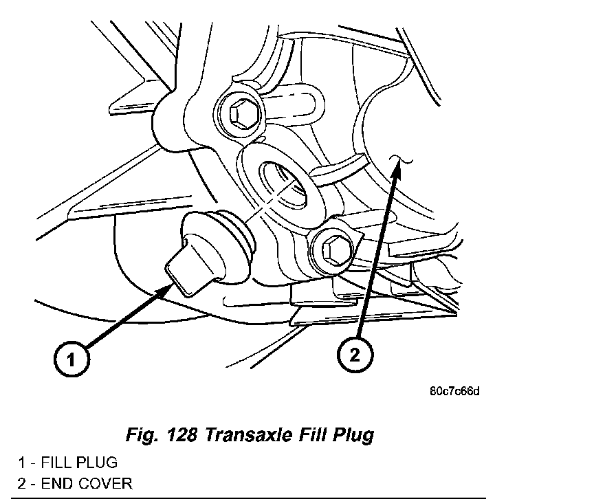 1. Remove transaxle fill plug (Fig. 128).
