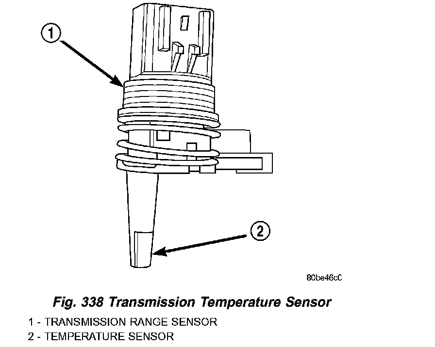 The TRS has an integrated thermistor (Fig. 338) that the TCM uses to monitor the transmission's sump temperature. Since fluid temperature can affect transmission shift quality and convertor lock up, the TCM requires this information to determine which shift schedule to operate in. The PCM also monitors this temperature data so it can energize the vehicle cooling fan(s) when a transmission "overheat" condition exists. If the thermistor circuit fails, the TCM will revert to calculated oil temperature usage.