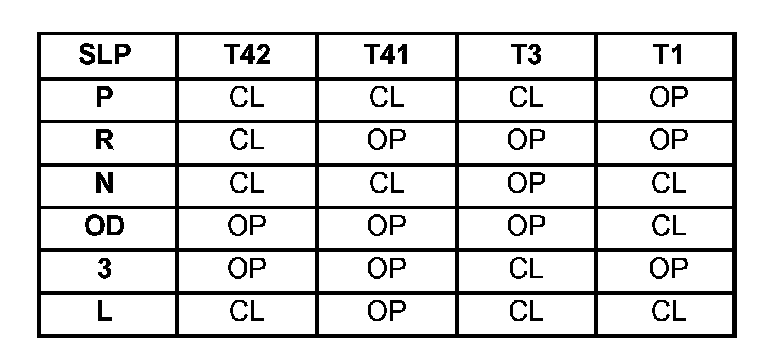 Since there are four switches, there are 16 possible combinations of open and closed switches (codes). Seven of these codes are related to gear position and three are recognized as "between gear" codes. This results in six codes, which should never occur. These are called "invalid" codes. An invalid code will result in a DTC, and the TCM will then determine the shift lever position based on pressure switch data. This allows reasonably normal transmission operation with a TRS failure.