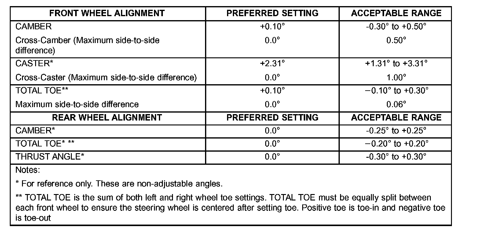 All wheel alignments are to be set at curb height.