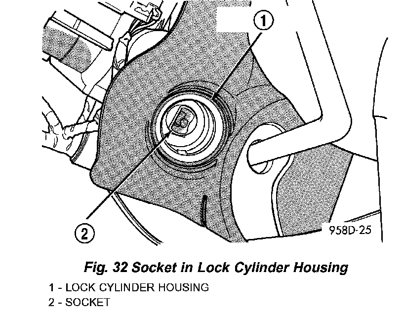 2. The shaft at the end of the lock cylinder aligns with the socket in the end of the housing. To align the socket with the lock cylinder, ensure the socket is in the Run position (Fig. 32).