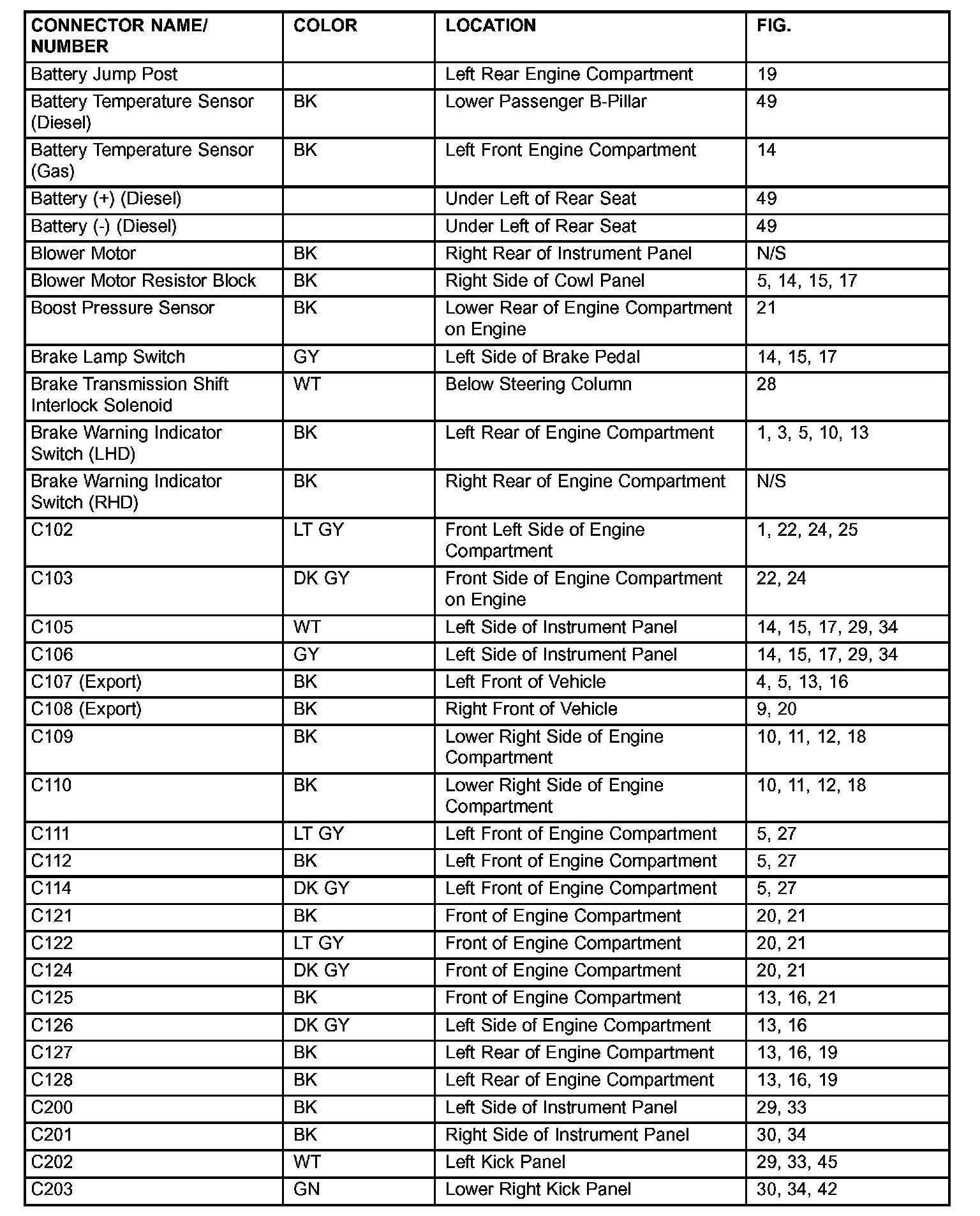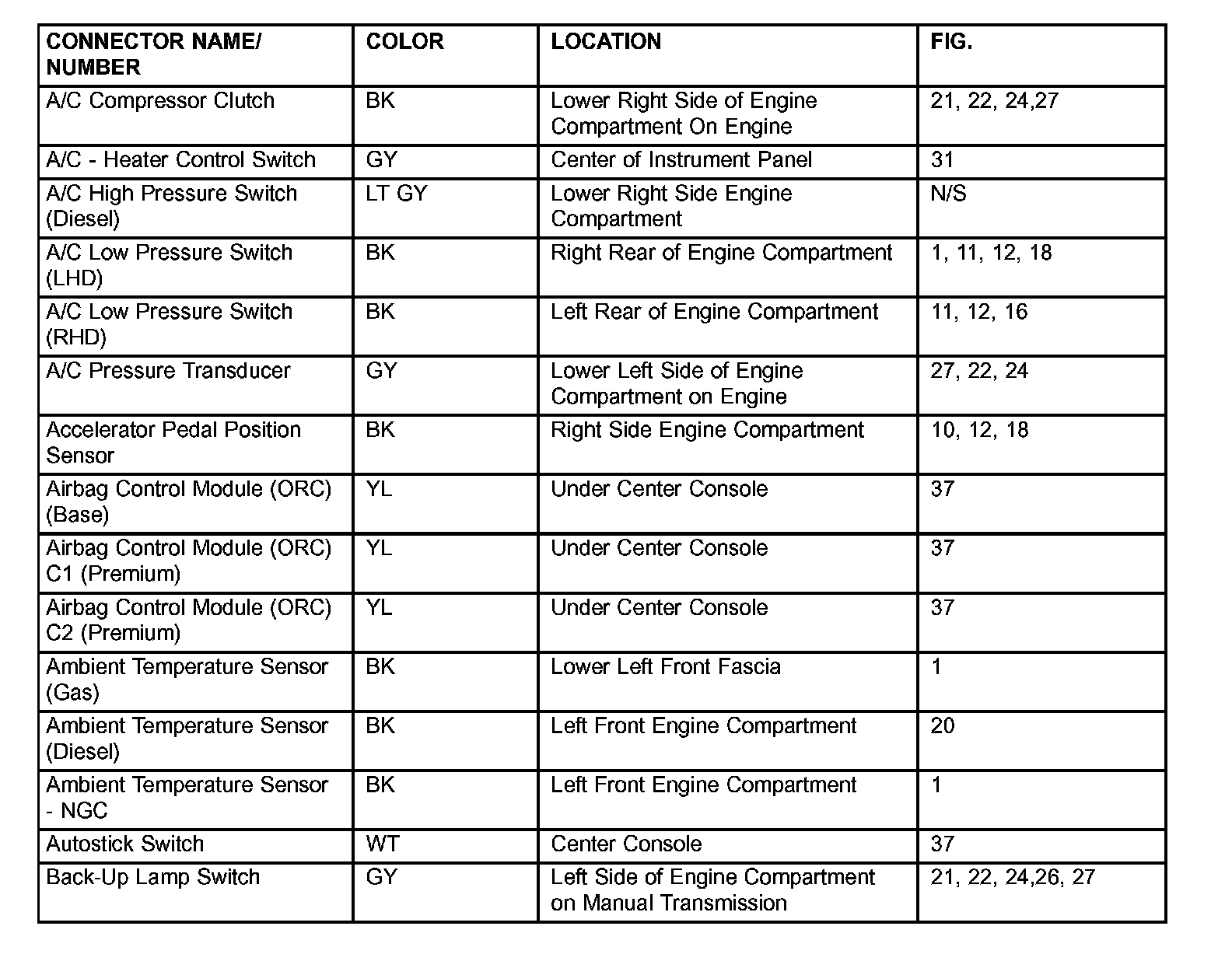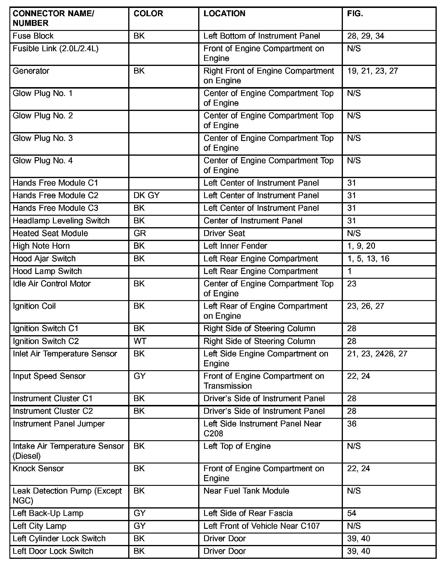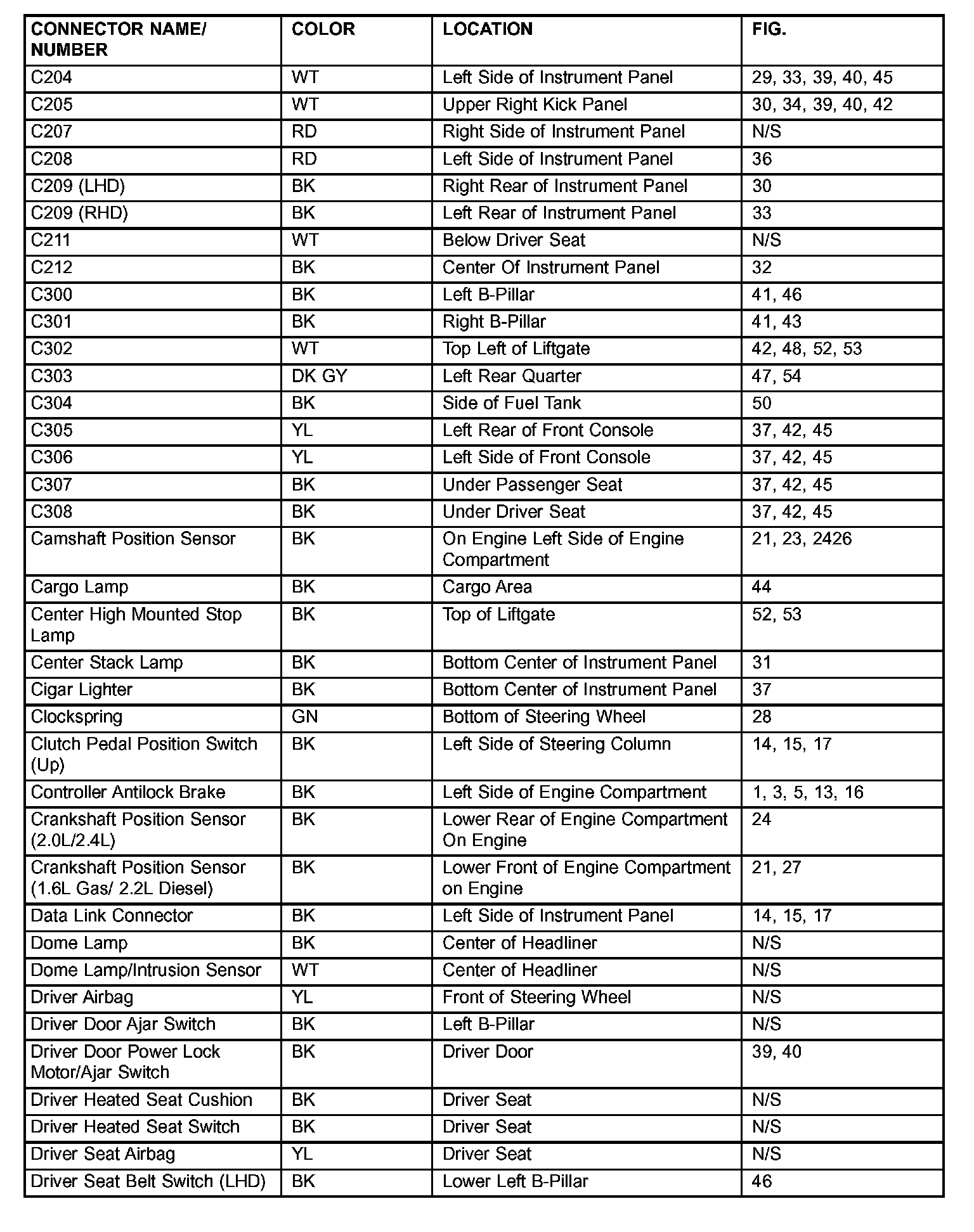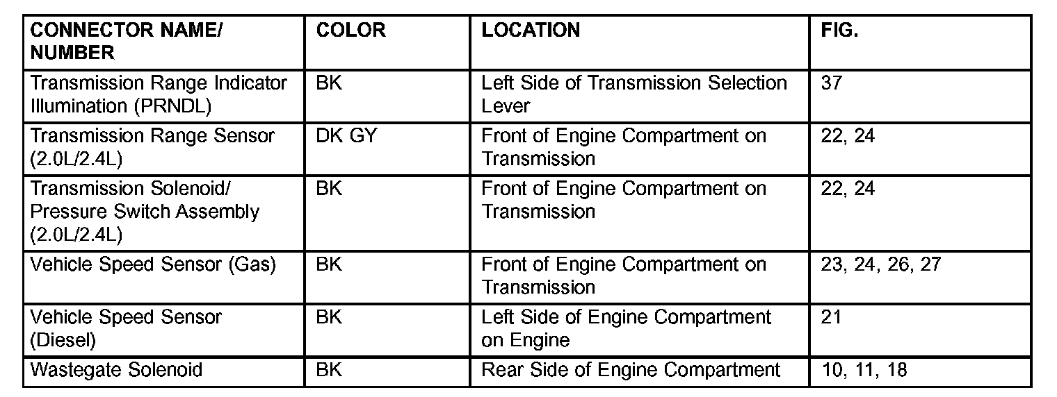 If a link on the index chart to a figure is not provided, that means that the connector and/or figure in question does NOT apply to the vehicle model selected.