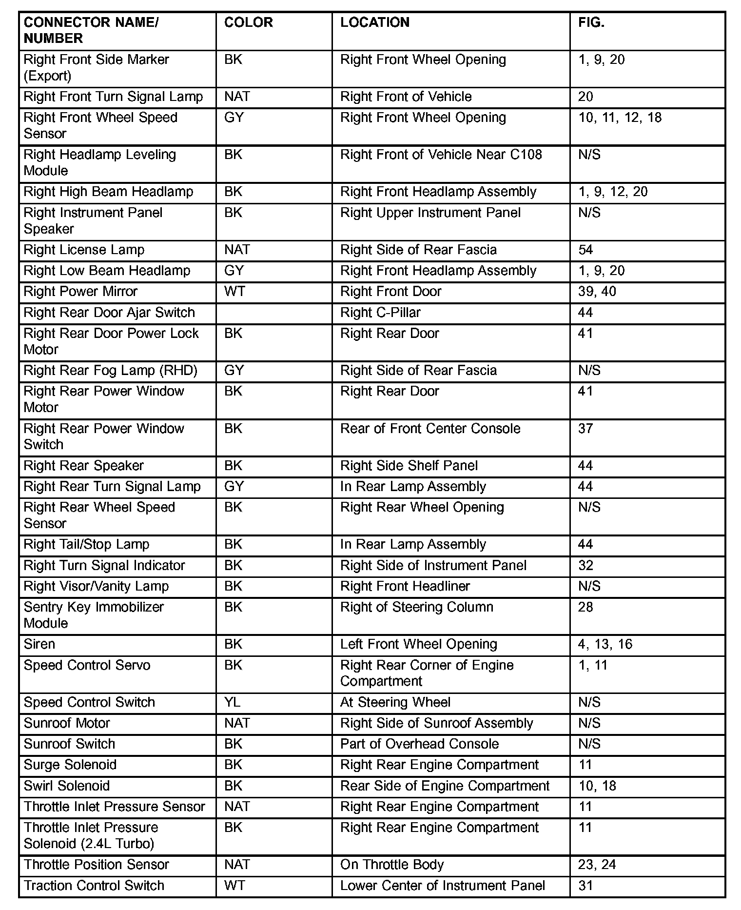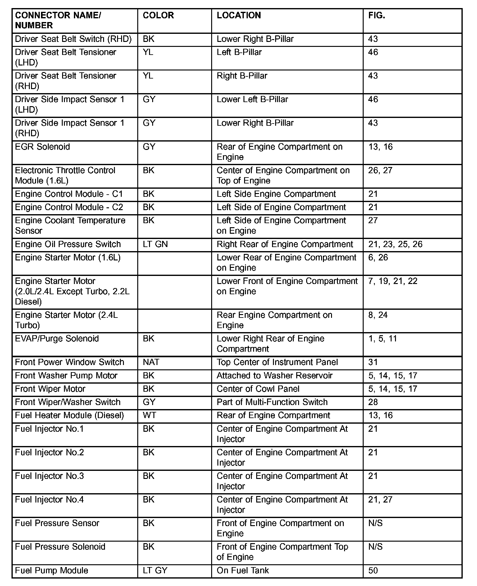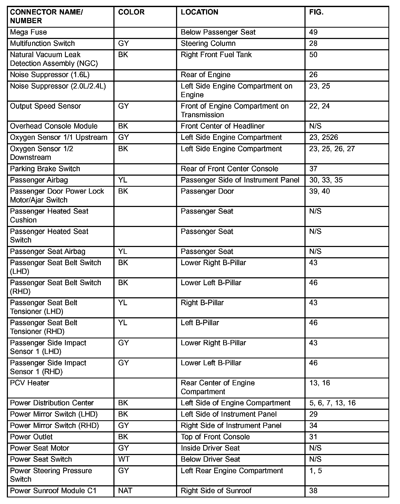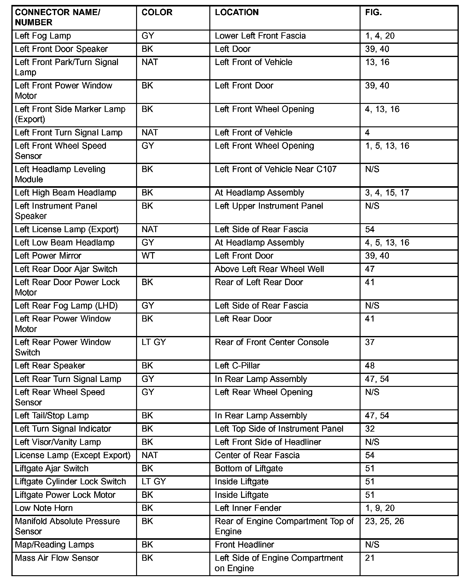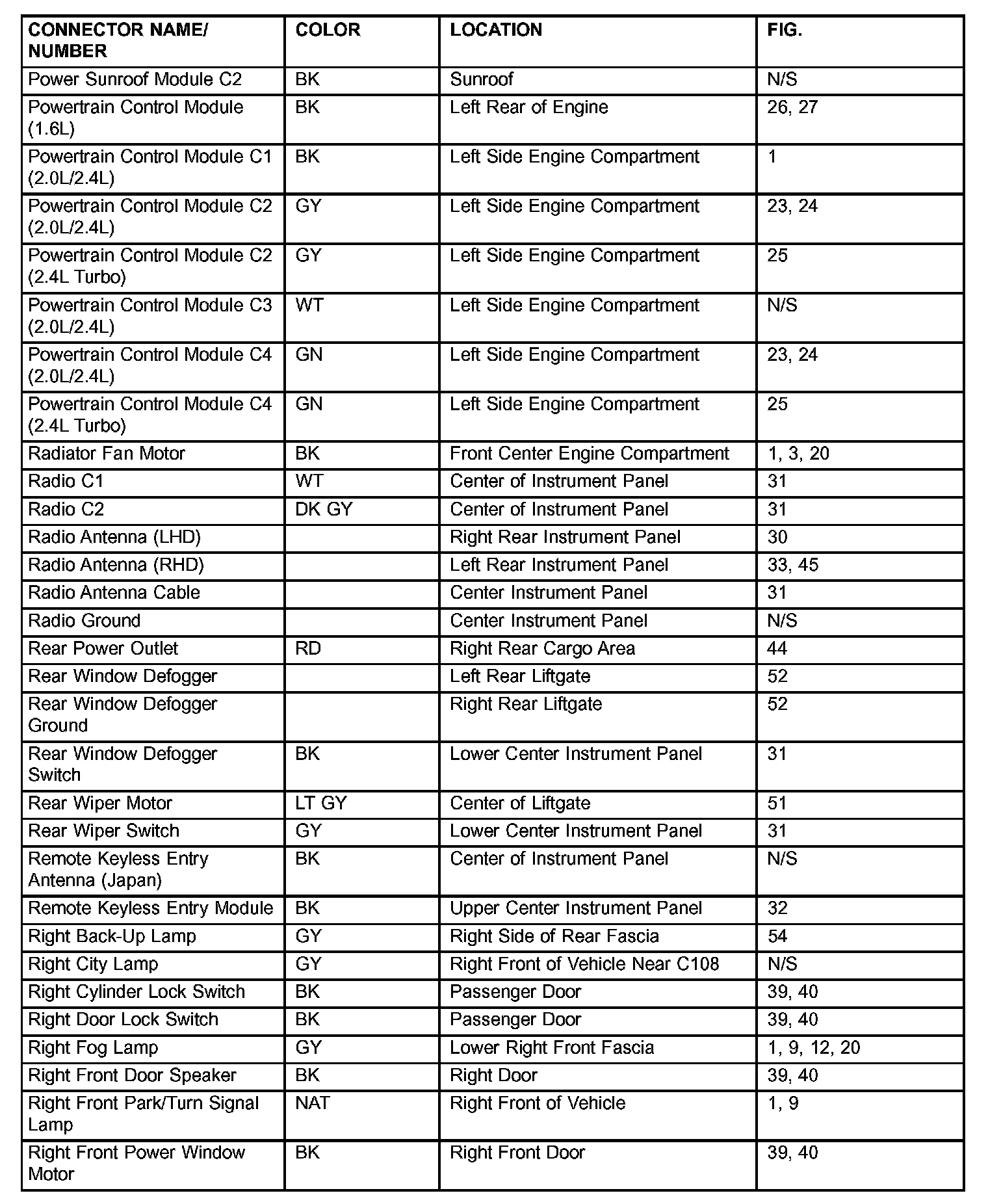 If a link on the index chart to a figure is not provided, that means that the connector and/or figure in question does NOT apply to the vehicle model selected.