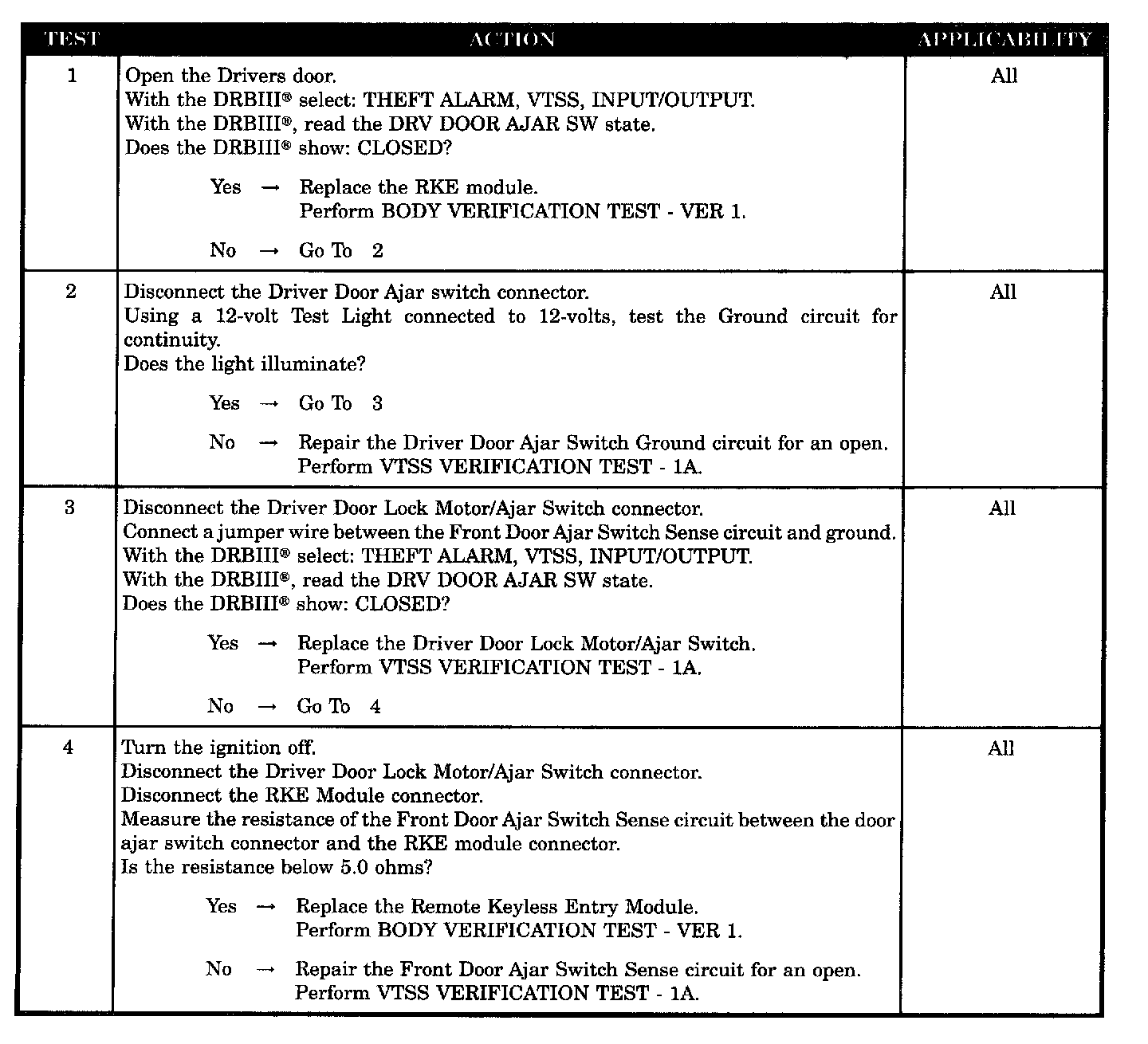 OPEN DRIVER DOOR FAILS TO TRIP ALARM