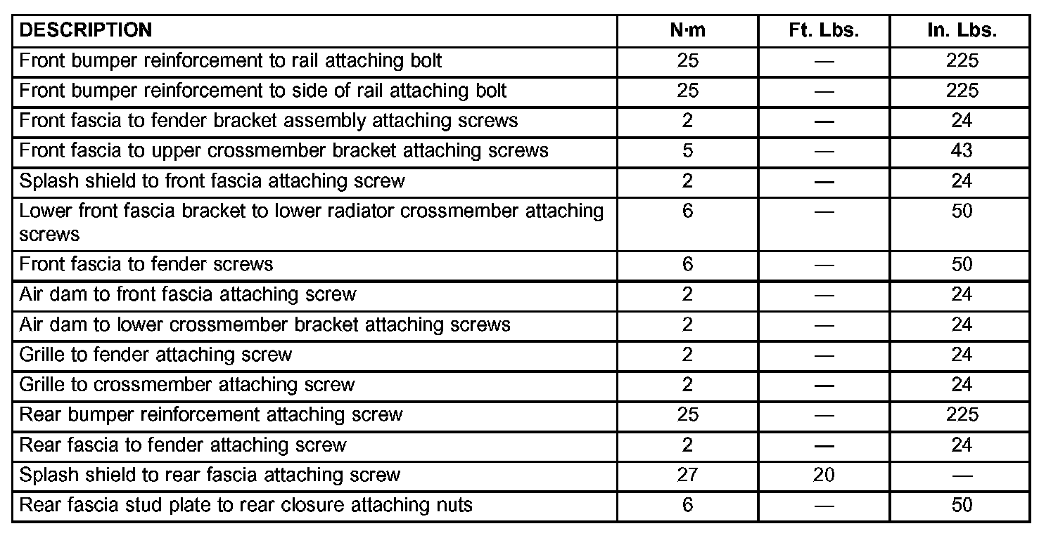 Torque Specifications: