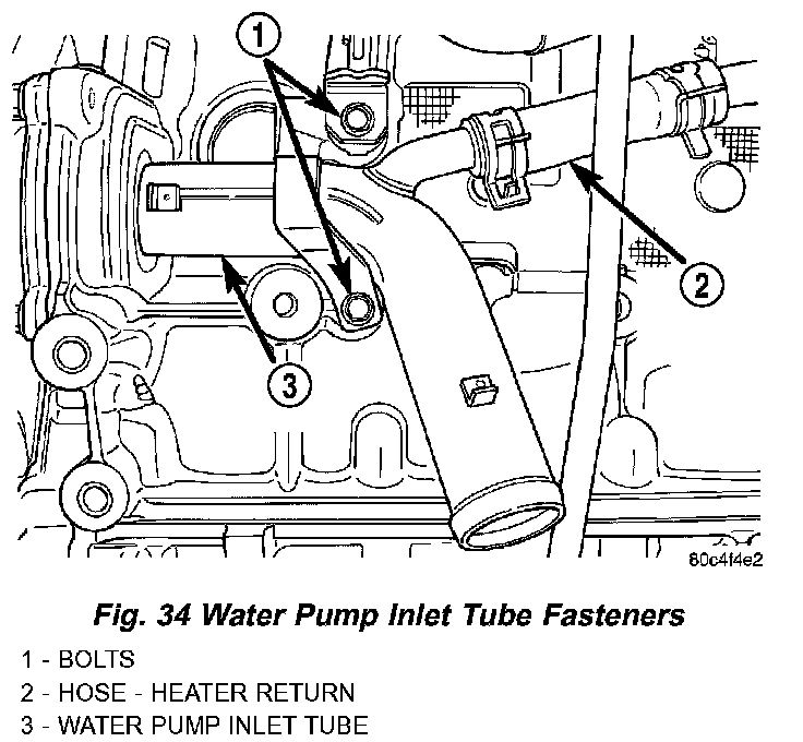 The water pump inlet tube connects the water pump to the radiator and heater core. This tube is sealed by an O-ring and held in place by fasteners to the block.