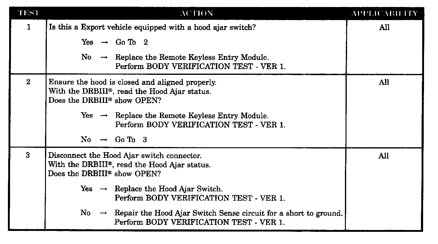 - Hood ajar switch sense circuit shorted to ground (if equipped)