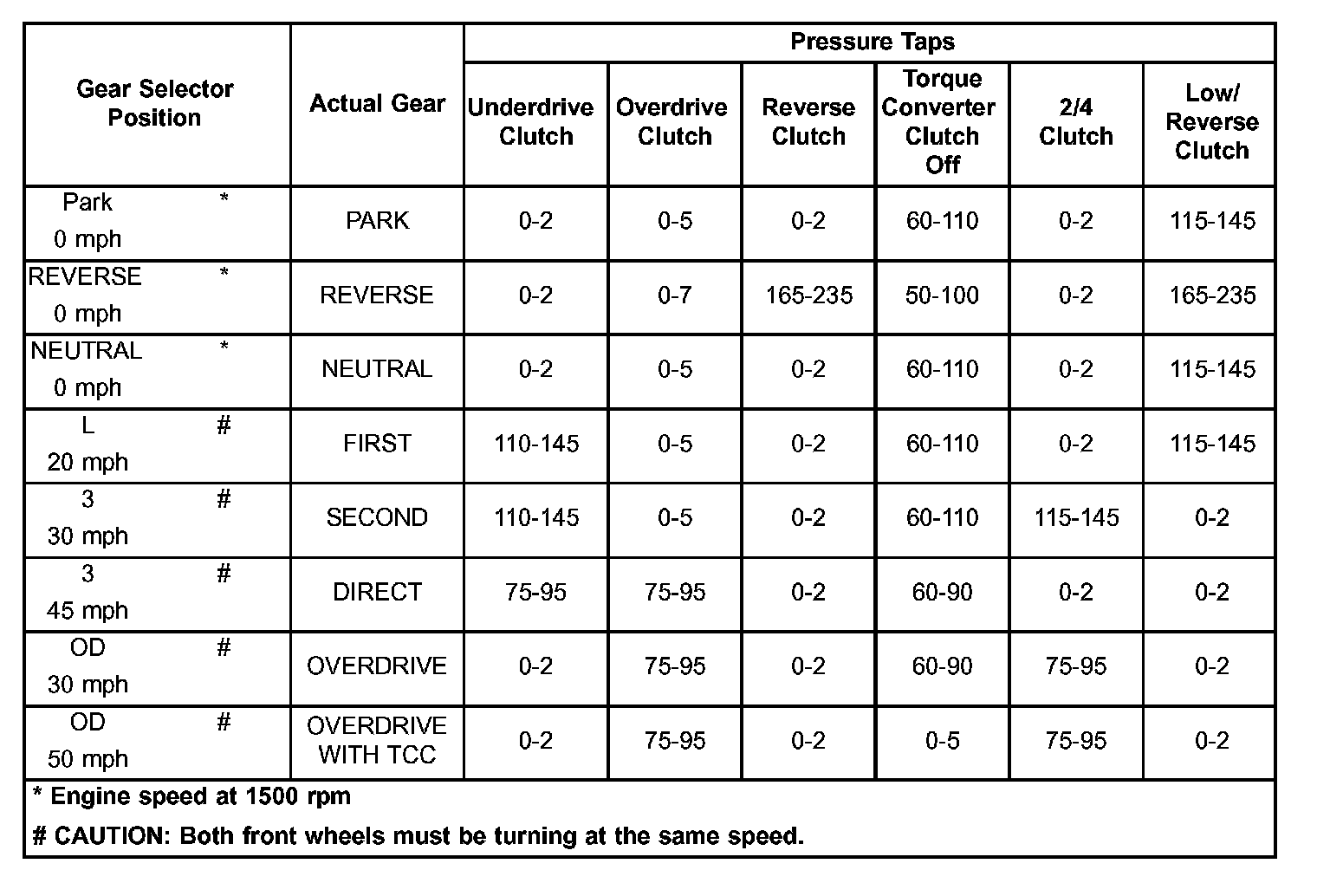 Clutch Air Pressure Check Specification:
