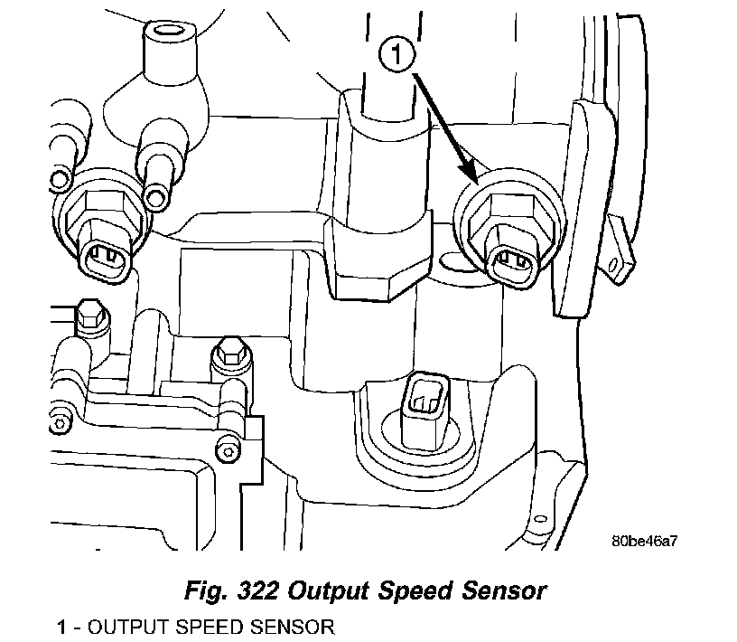 6. Unscrew and remove output speed sensor (Fig. 322).