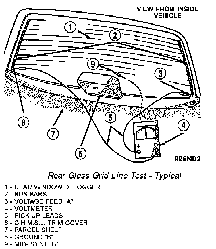 b. All rear window grid lines would have to be broken or one of the feed wires are not connected for the system to be inoperative.
