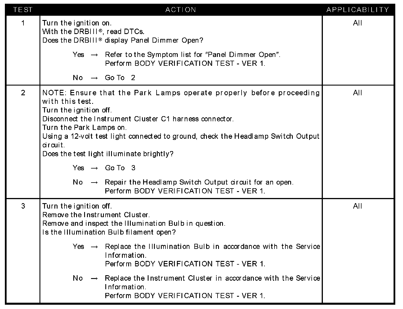 Instrument Cluster Dimming Inoperative