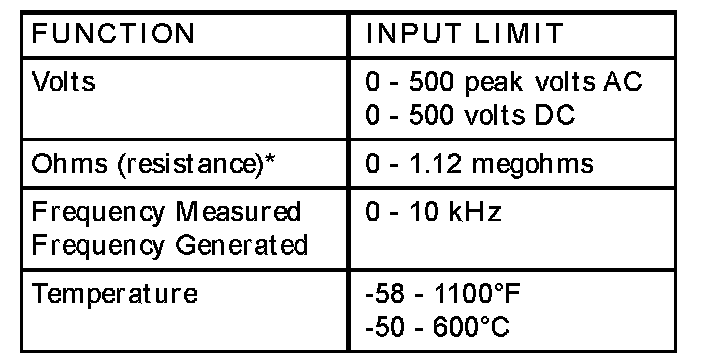 *Ohms cannot be measured if voltage is present. Ohms can be measured only in a non-powered circuit.