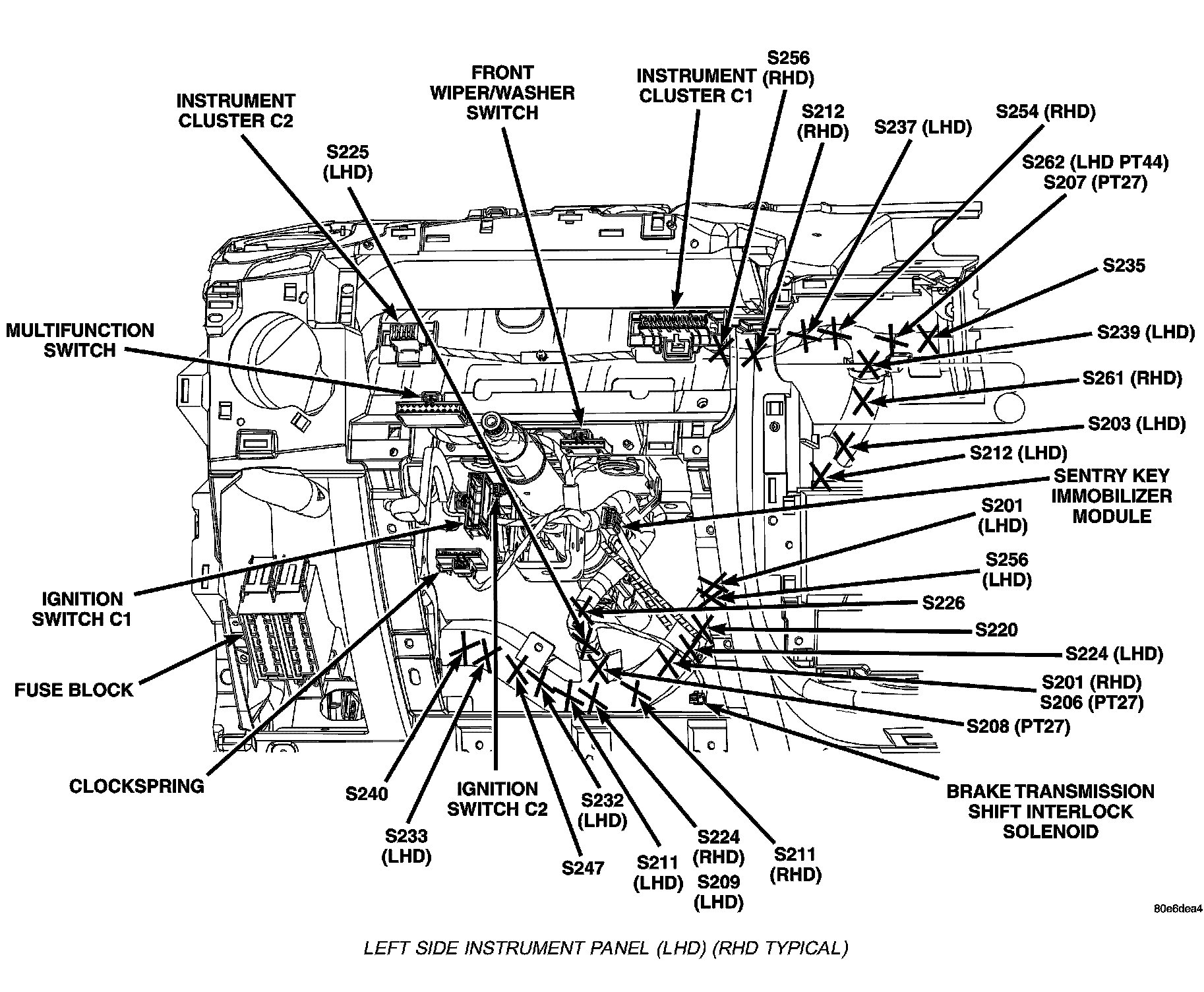Left Side Instrument Panel (LHD) (RHD Typical):