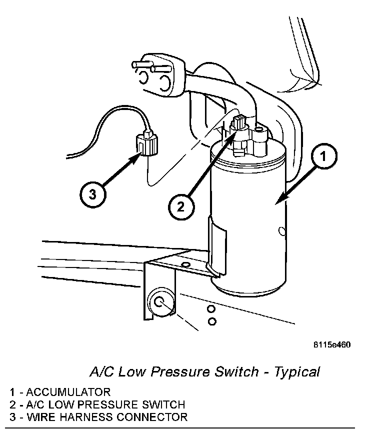 REMOVALNOTE: It is not necessary to discharge the refrigerant system to replace the A/C low pressure switch.