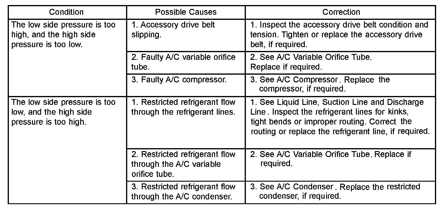 A/C Performence Temperature And Pressure - (Non-Turbo Engines Only):