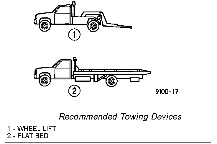 To avoid damage to bumper fascia and air dams use of a wheel lift or flat bed towing device is recommended. When using a wheel lift towing device, be sure the unlifted end of disabled vehicle has at least 100 mm (4 in.) ground clearance. If minimum ground clearance cannot be reached, use a towing dolly. If a flat bed device is used, the approach angle should not exceed 15 degrees.