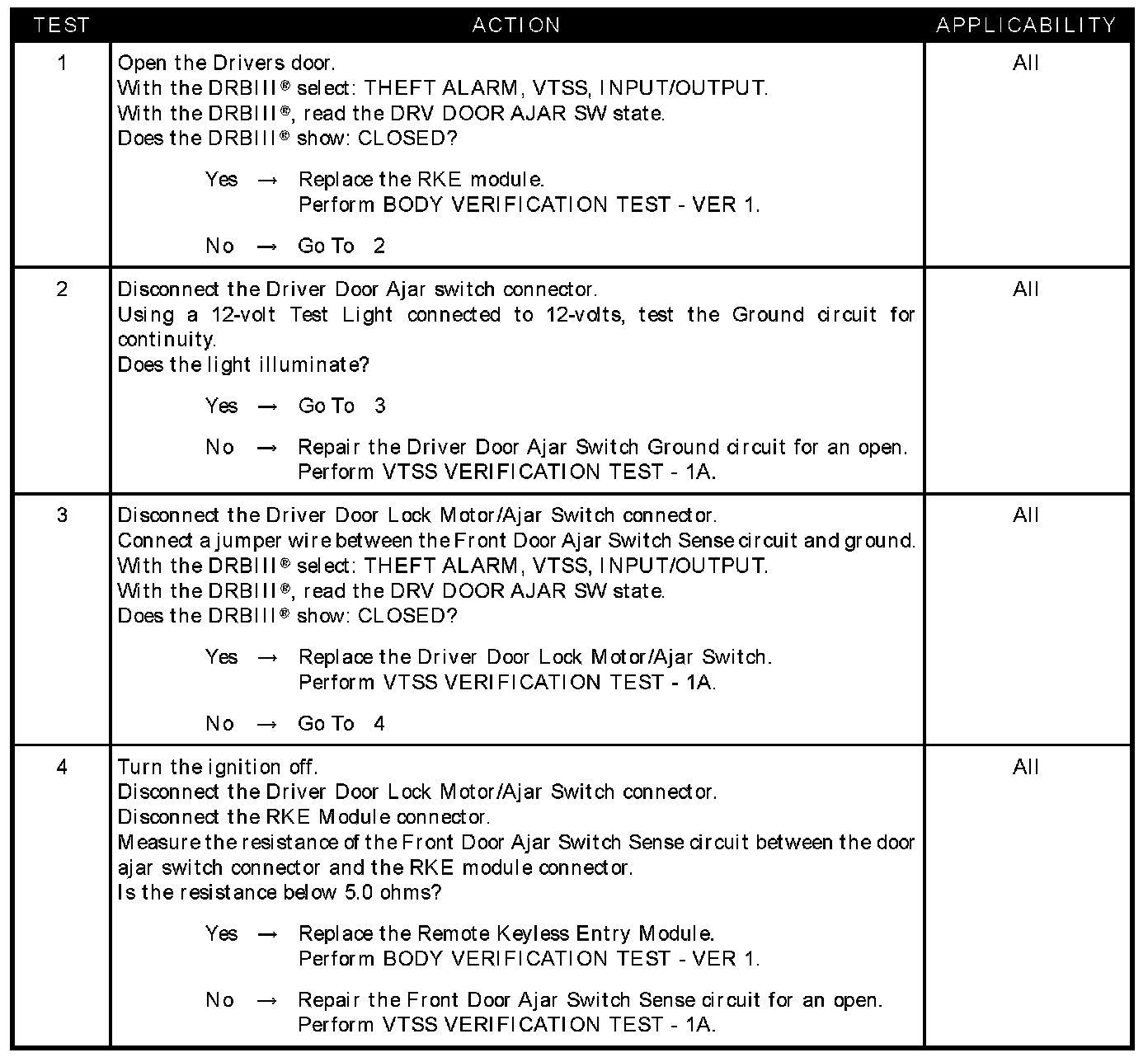OPEN DRIVER DOOR FAILS TO TRIP ALARM