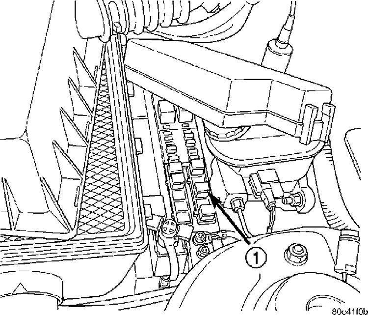 is located in the left front corner of the engine compartment, just behind the air cleaner housing and the battery.