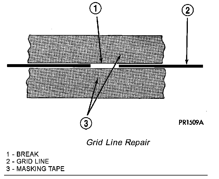 8. After the conductive epoxy is properly cured, check the operation of the rear window defogger glass heating grid.