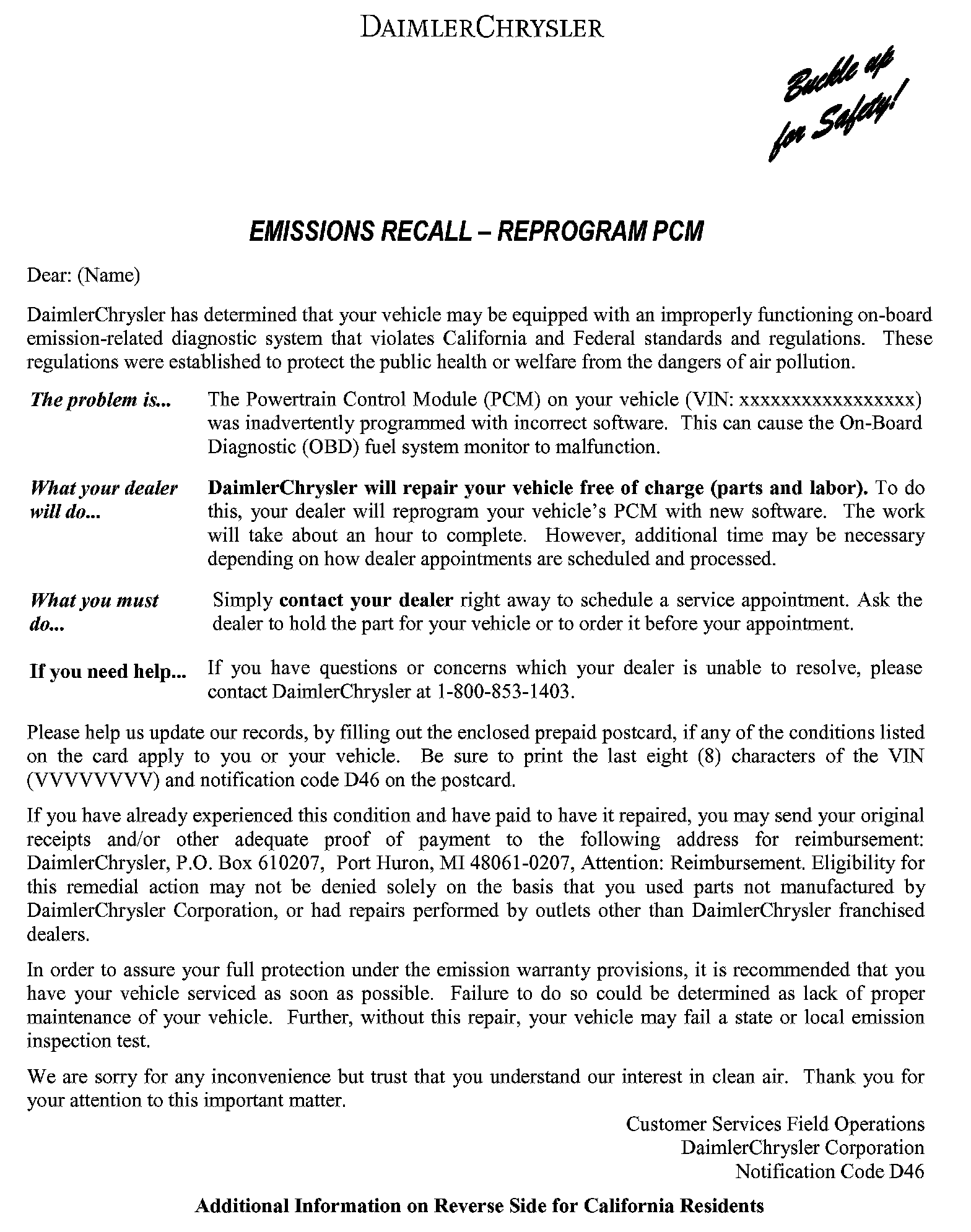 Recall - Reprogram PCM for Emissions