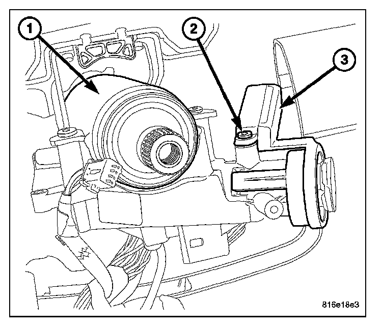 3. Remove the SKREEM/WCM mounting screw (2) on the ignition lock assembly and separate the SKREEM/WCM (3) from the ignition lock assembly.