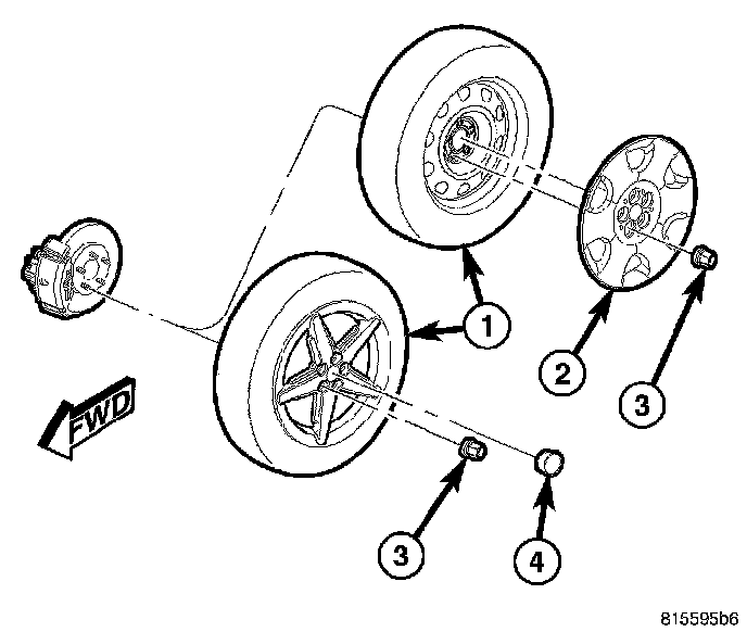 9. Install the tire and wheel assembly (1). Install and tighten the wheel mounting nuts (3) to 135 Nm (100 ft. lbs.).