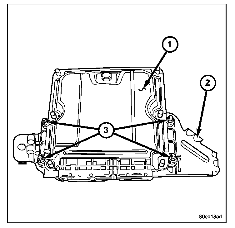 5. Remove ECM to bracket retaining nuts (3) and remove ECM (1) from bracket (2).