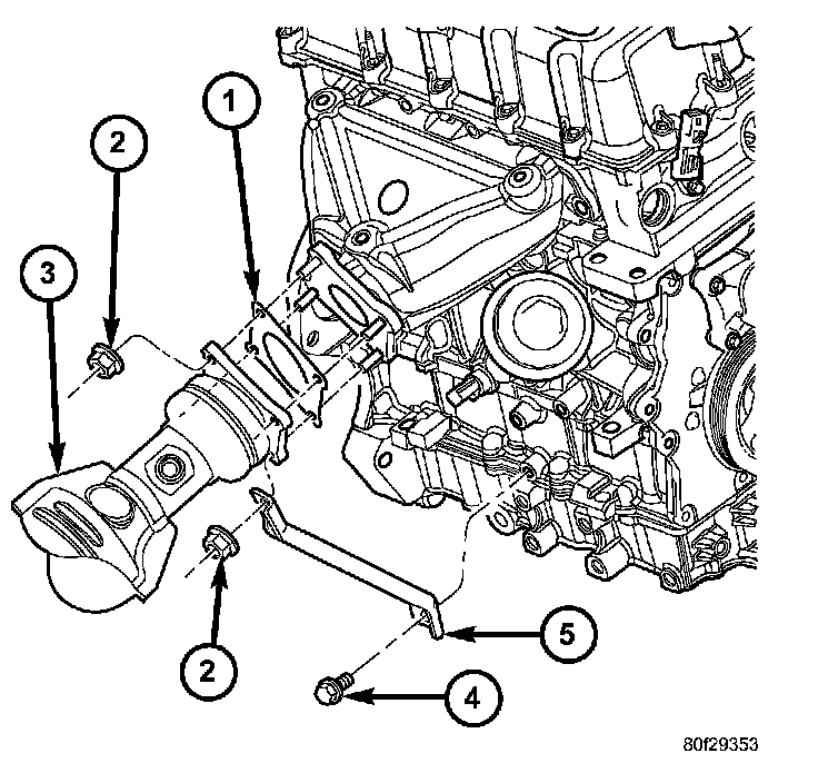 1. Assemble catalytic converter (2) to exhaust manifold connection. Use a new flange gasket (1).