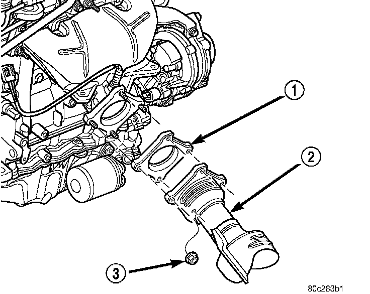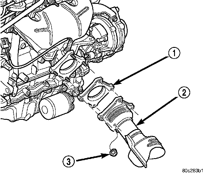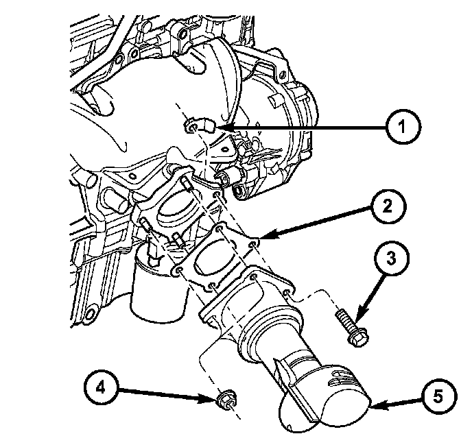 4. Remove catalytic converter (3) to exhaust manifold attaching fasteners and remove converter from vehicle, 1.6L engine.