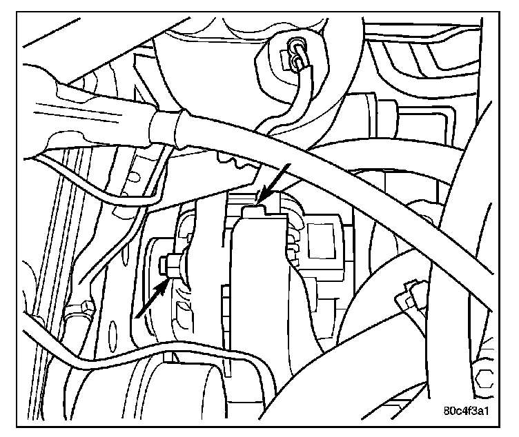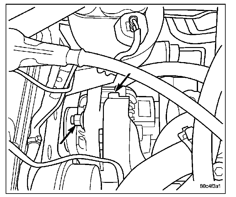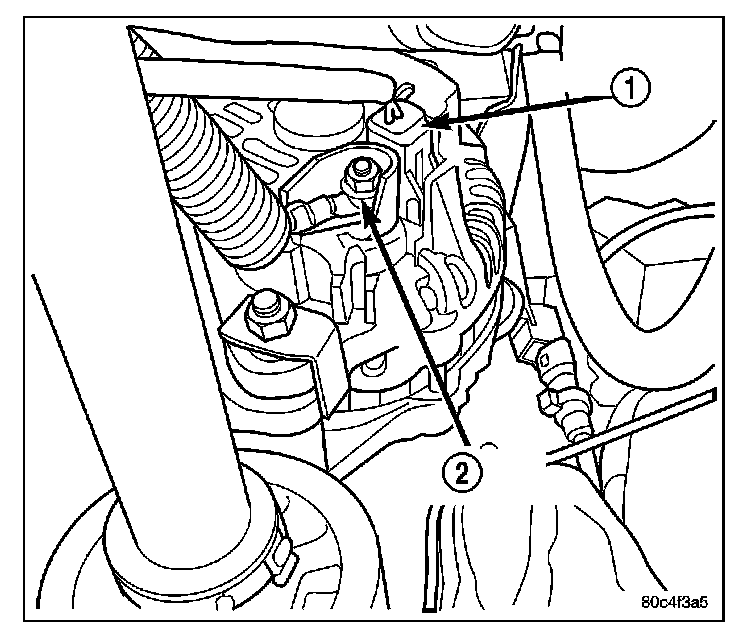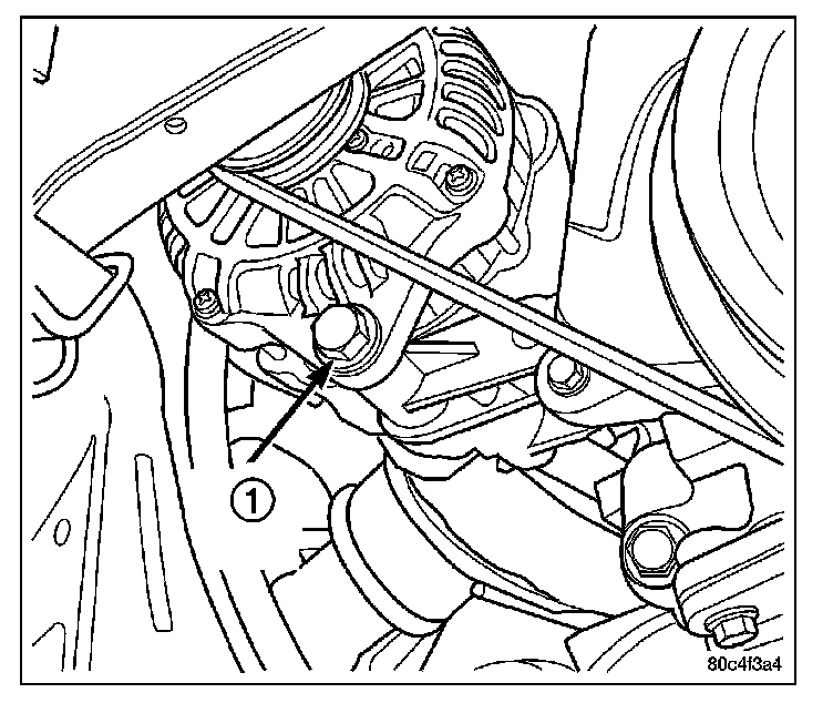16. Remove the generator lower mounting bolt and nut from the upper T-bolt.