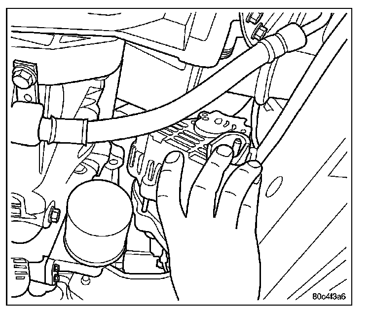 16. Install the air cleaner lid and connect the inlet air temperature sensor and makeup hose.