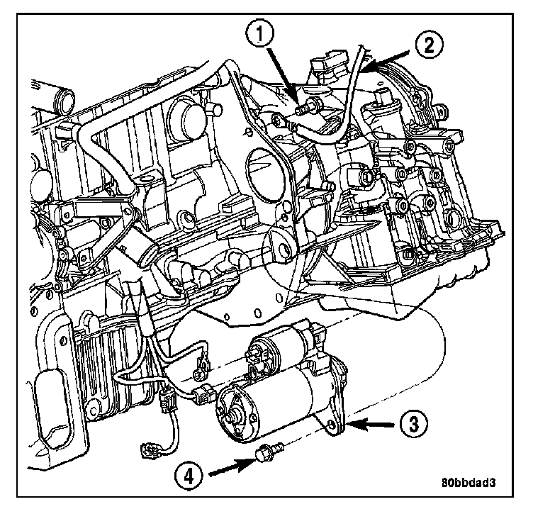 1. Reinstall starter motor into vehicle lower engine compartment.