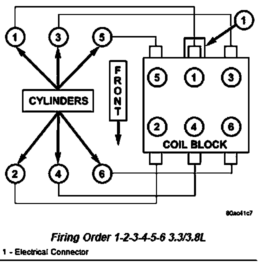 The firing order is 1-2-3-4-5-6. The cylinders are numbered from the front of the engine to the rear. The front cylinder bank is numbered 2, 4, and 6. The rear cylinder bank is numbered 1, 3, and 5.