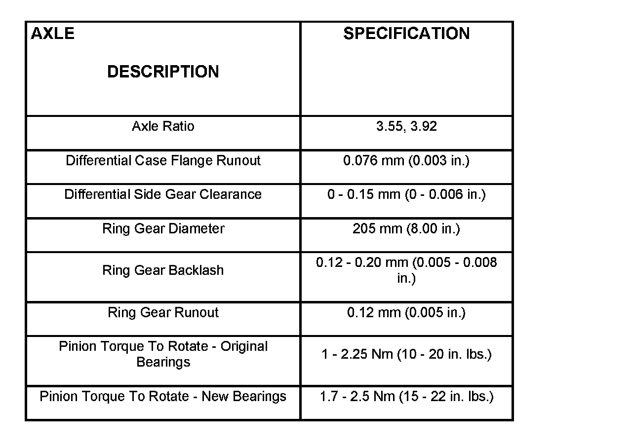 Axle Specifications: