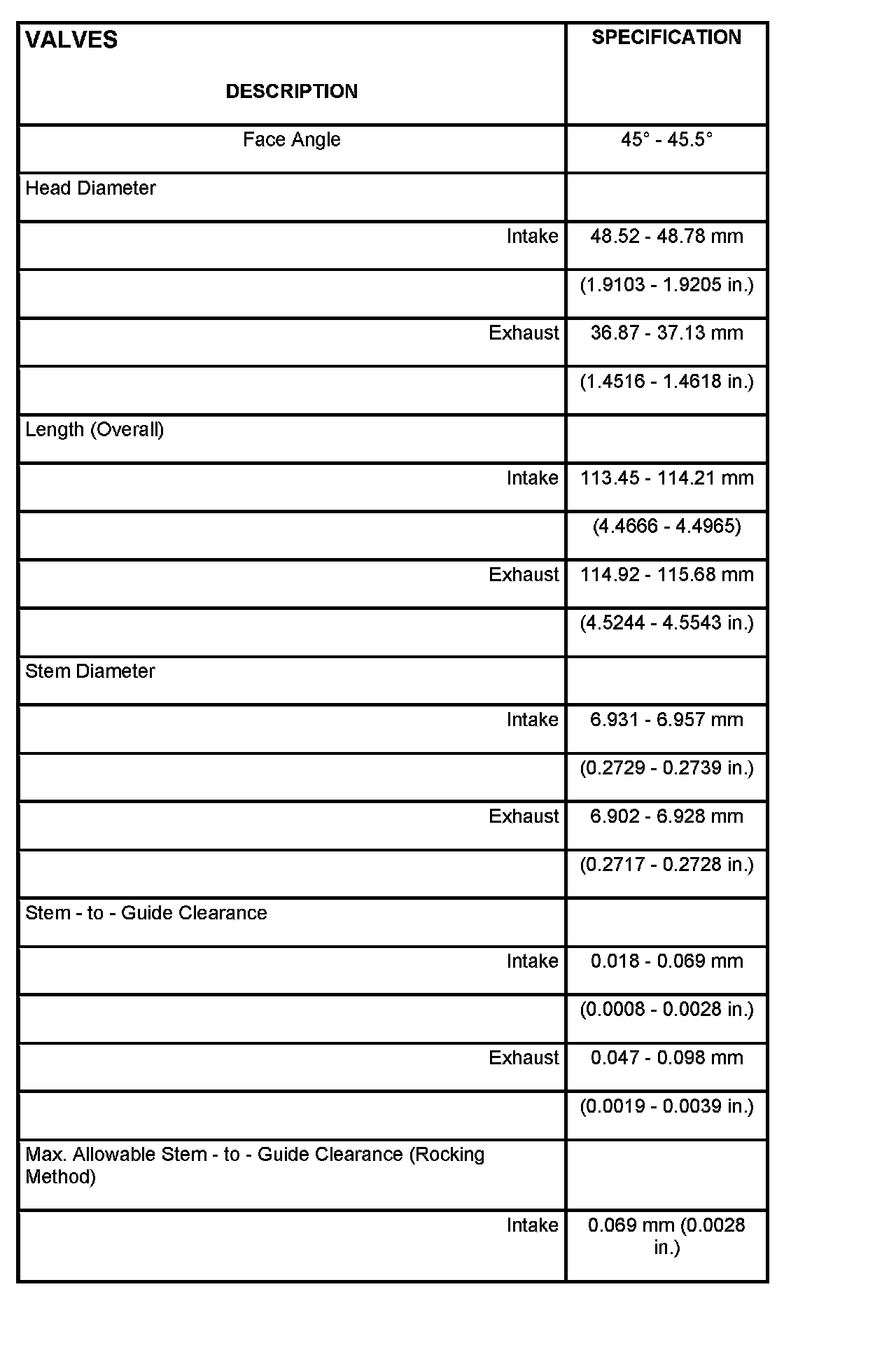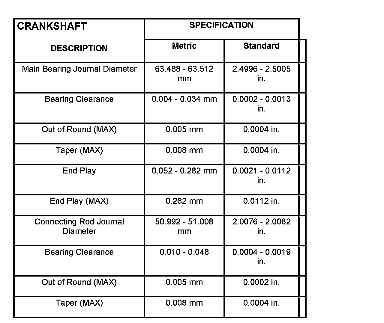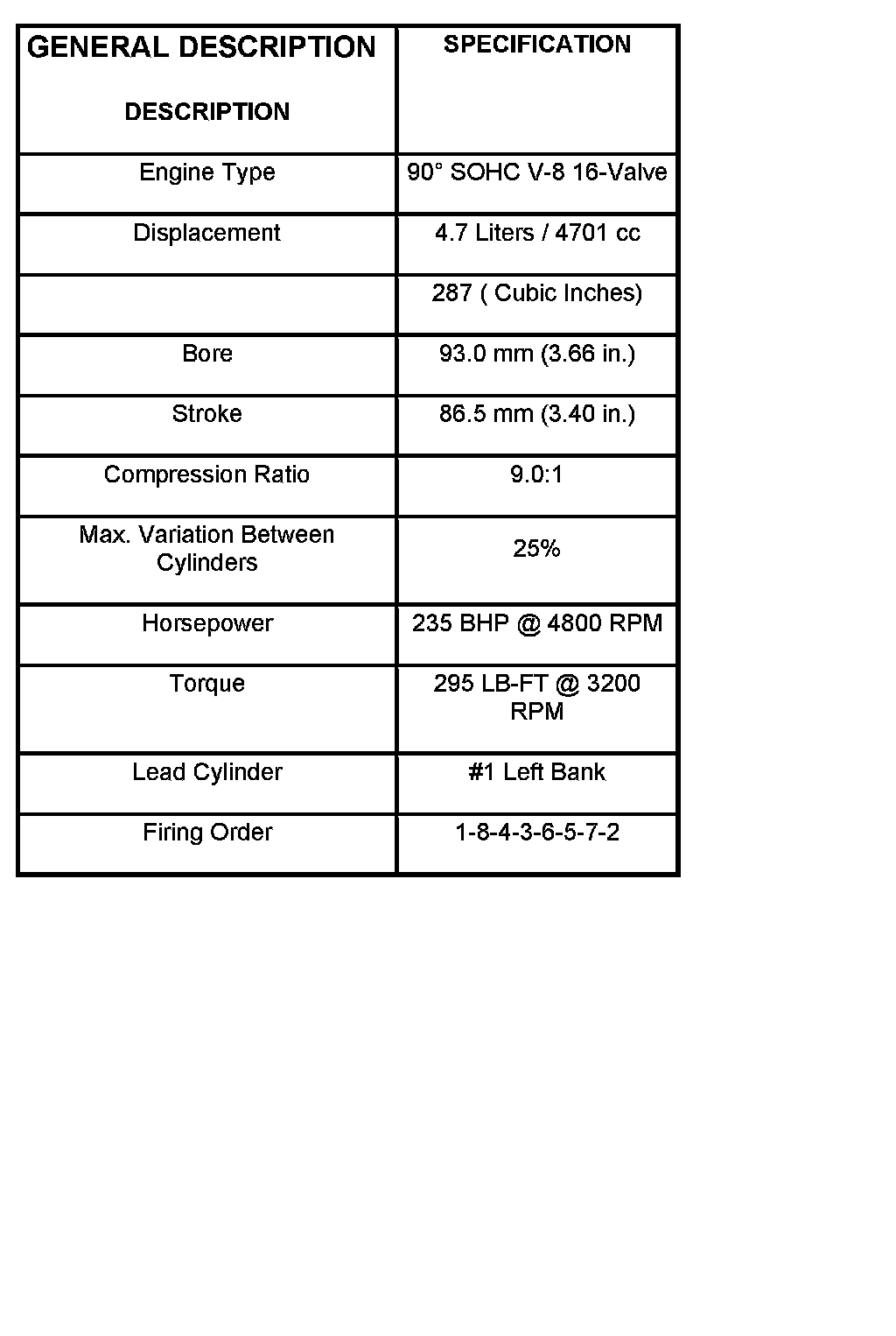 SPECIFICATIONS - 4.7L ENGINE