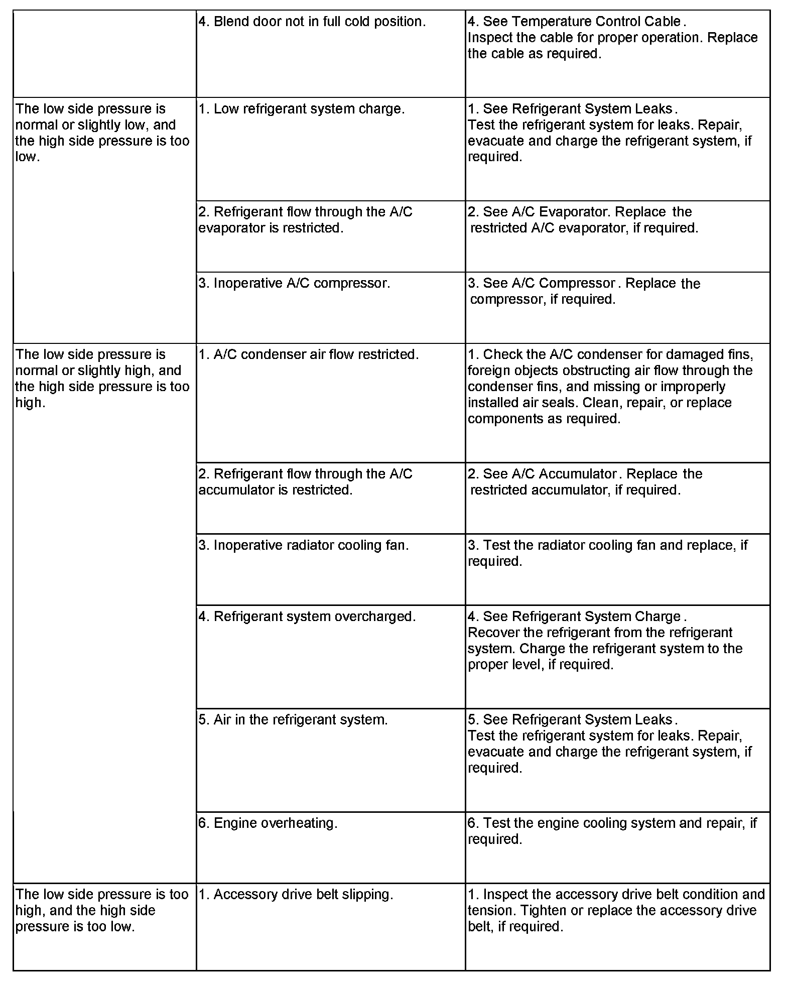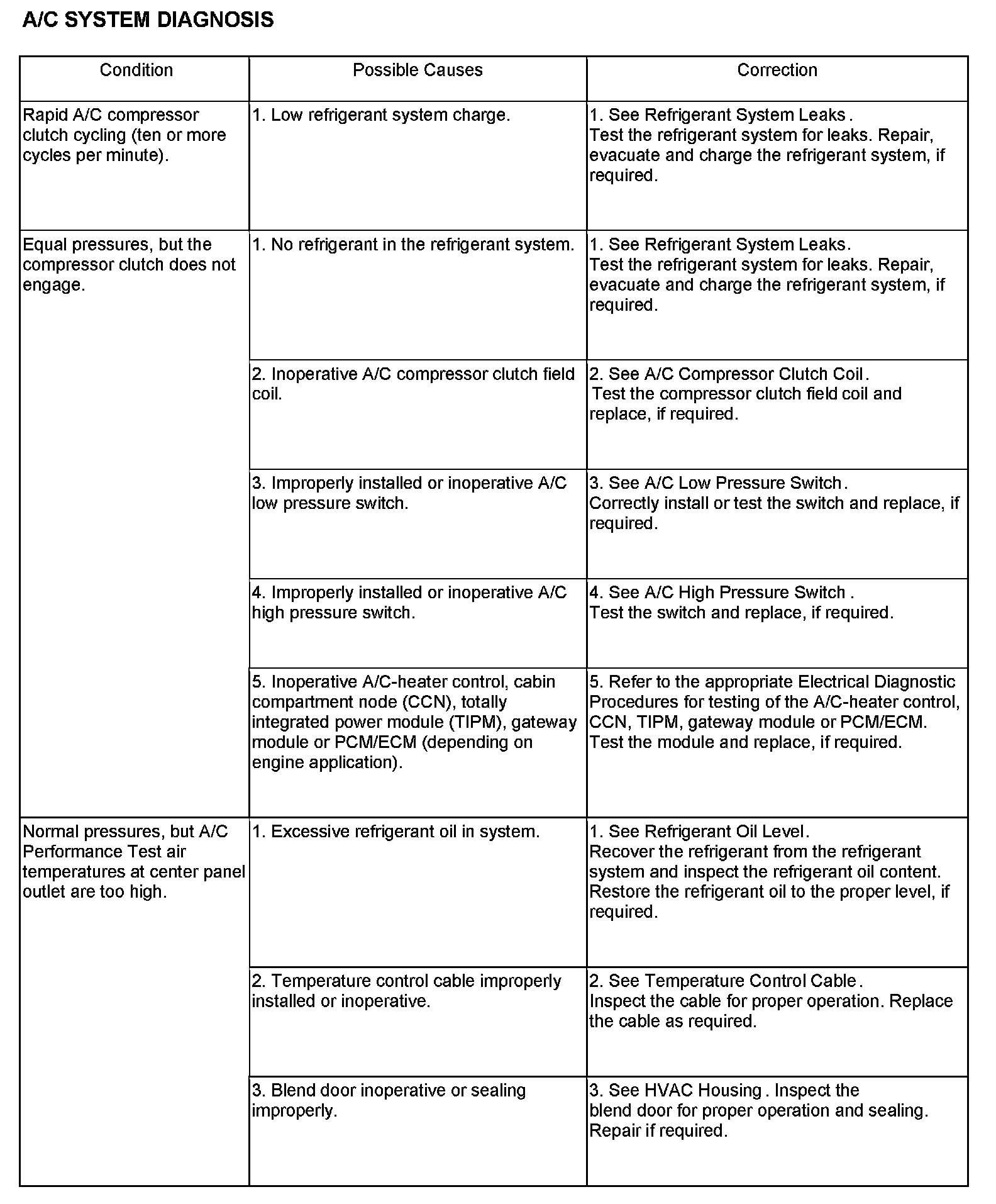 - A/C-heater controls set to Recirculation mode (max-A/C), full cool, panel mode, high blower and with A/C compressor engaged. If the A/C compressor does not engage, see the A/C System Diagnosis chart.