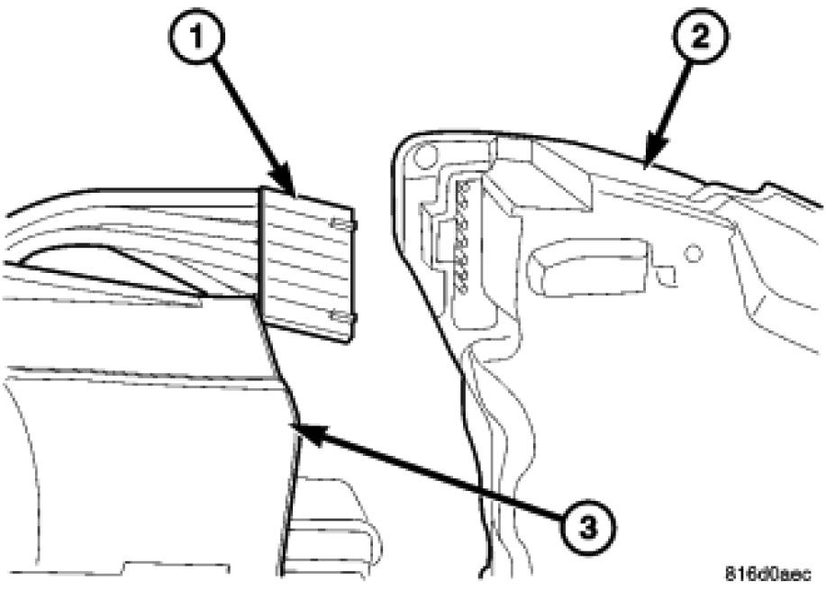1. Position the right multi-function switch to the back of the Steering Column Control Module (SCCM) (3) and connect the switch connector (1).