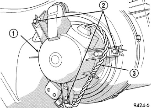 2. Install the three screws (2) that secure the blower motor (1) to the HVAC housing. Tighten the screws to 2 Nm (17 in. lbs.).