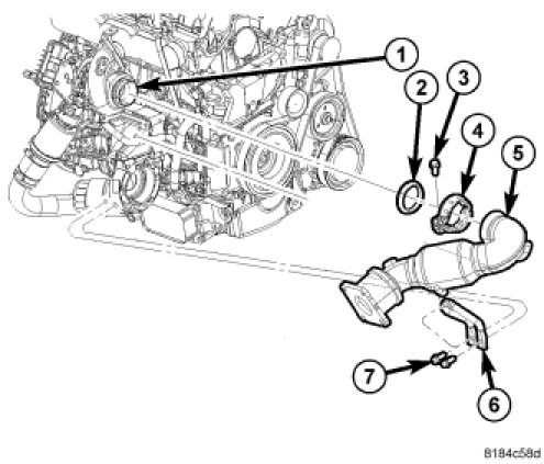 5. Insure clamp (4) is seated on both turbocharger and pre-catalytic converter. Tap clamp (4) if necessary.