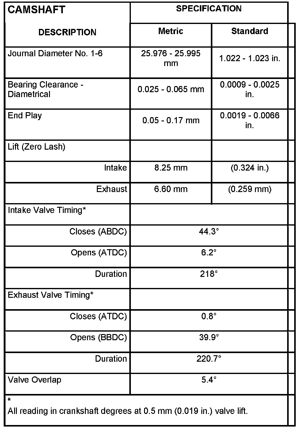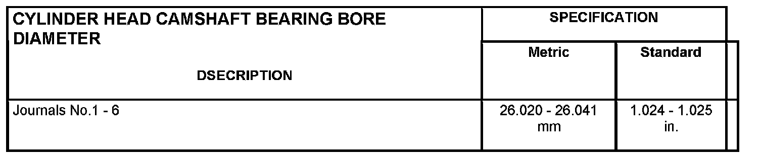 Cylinder Head Camshaft Bearing Bore Diameter