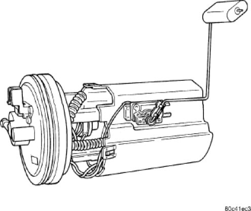 The fuel pump module is installed in the top of the fuel tank.