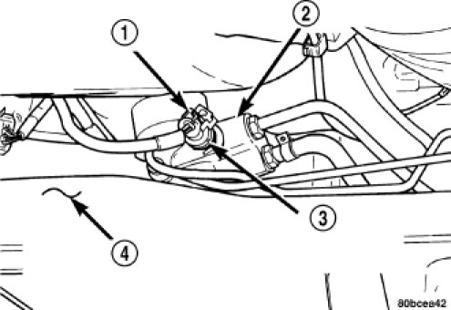 2. Locate the power steering fluid pressure switch (3) on the back side of the power steering gear (2).