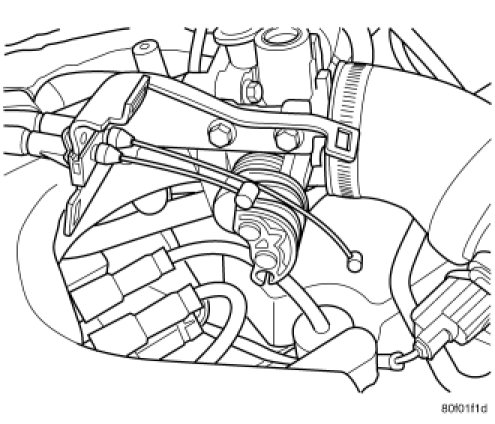 8. Install the throttle cables to the throttle body lever.