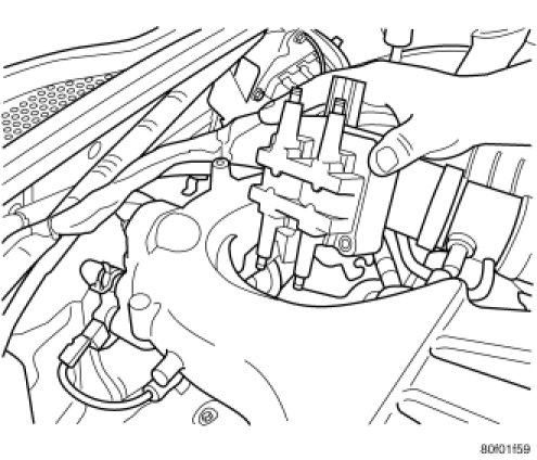 2. Rotate coil pack and install under intake manifold.