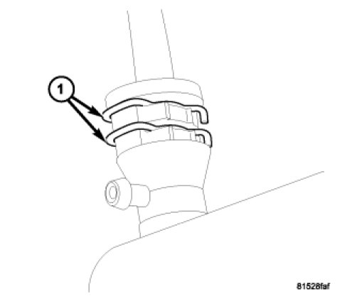 4. Release only the inner (closest to bleed port) hydraulic tube snap ring (3), pull outward on tube (2) until it stops against the second ring, opening up the bleed circuit and starting the air purge and fluid fill process.